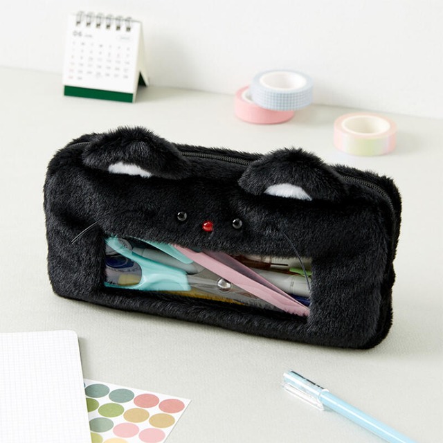 黒猫のふわふわポーチ(=^x^=)❤︎ 中身が見えるPVC窓付きで便利✨ 文房具やコスメなどをたくさん収納できます◎ サイズ : 21 x 10 x 3(cm) 商品番号【17004482】