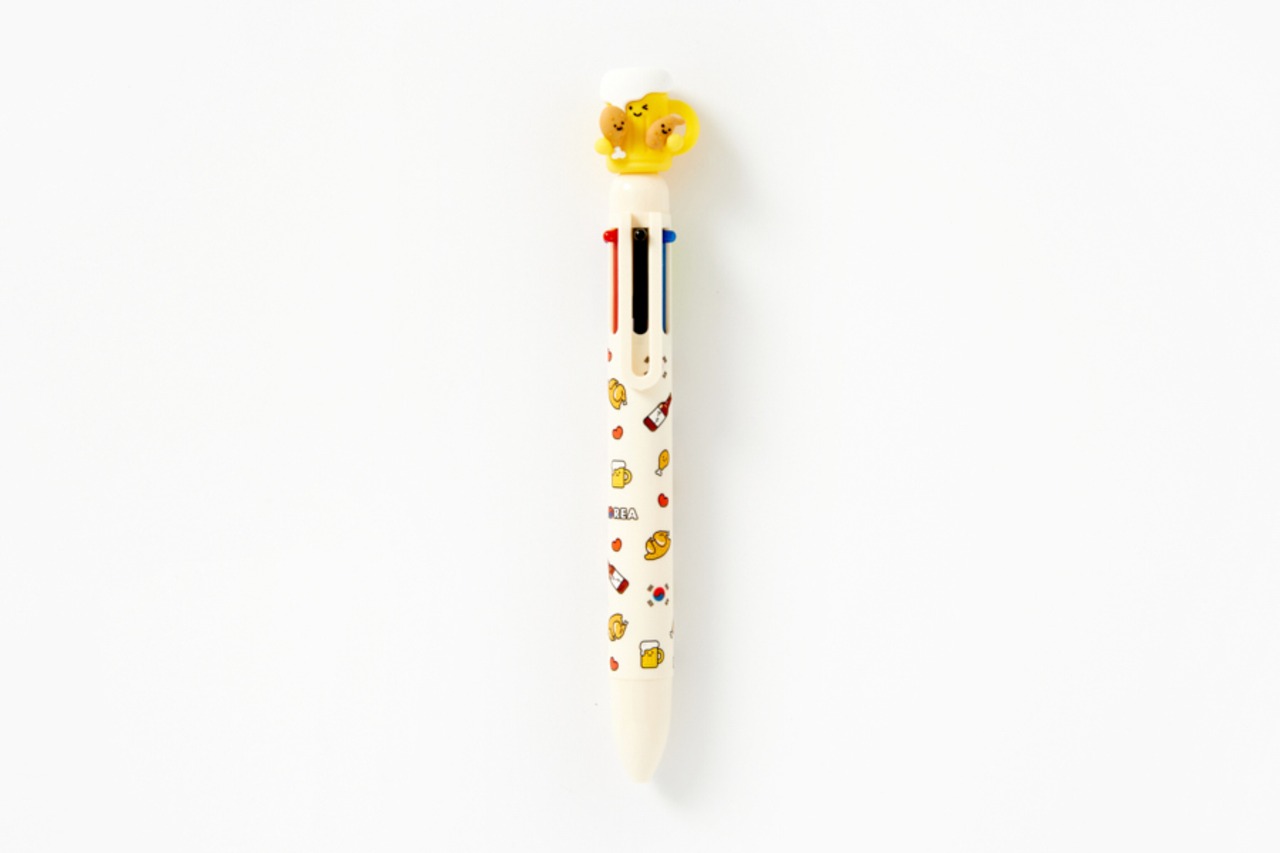 両手にチキンを持ったビールのフィギュアがついている筆記しやすい6色ボールペンです。