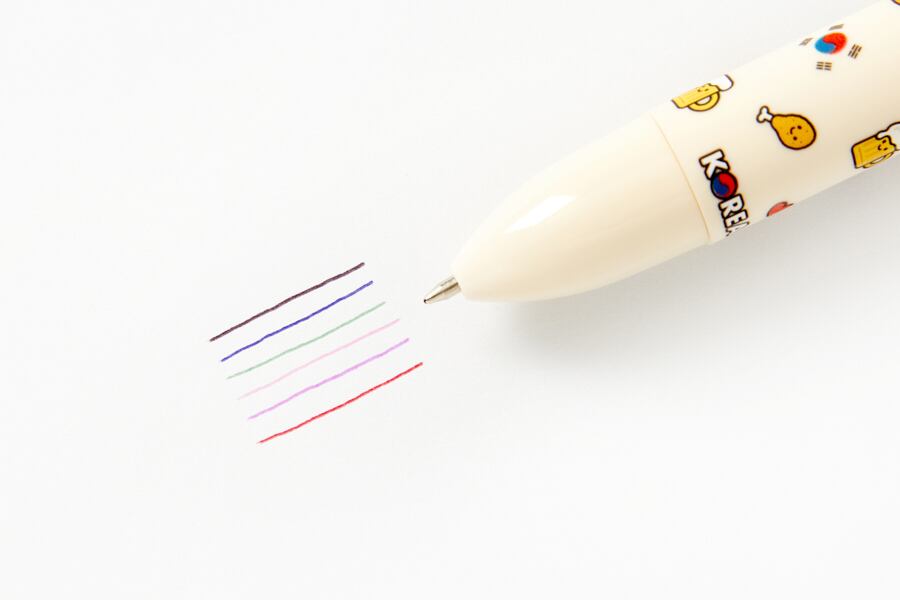 黒、青、緑、ピンク、紫、赤の6色が一つのペンに全部入っていてとても便利です。