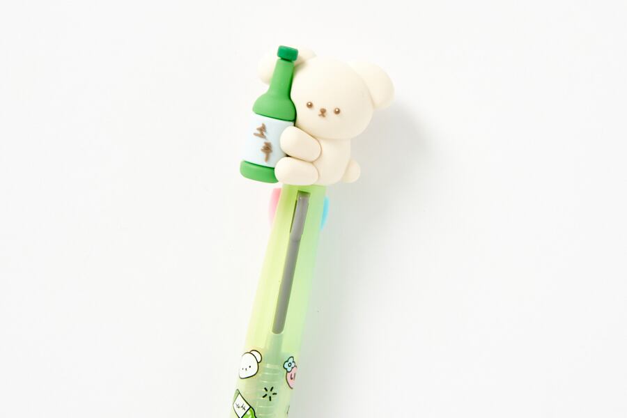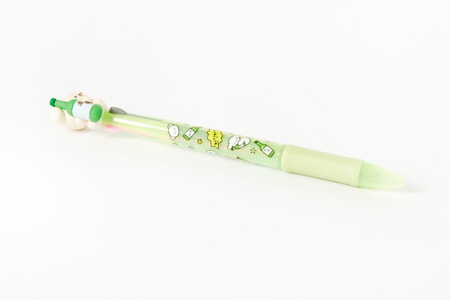 ソジュをギュッと抱えているビジョンのフィギュアがついた3色のボールペンです。