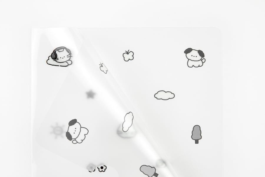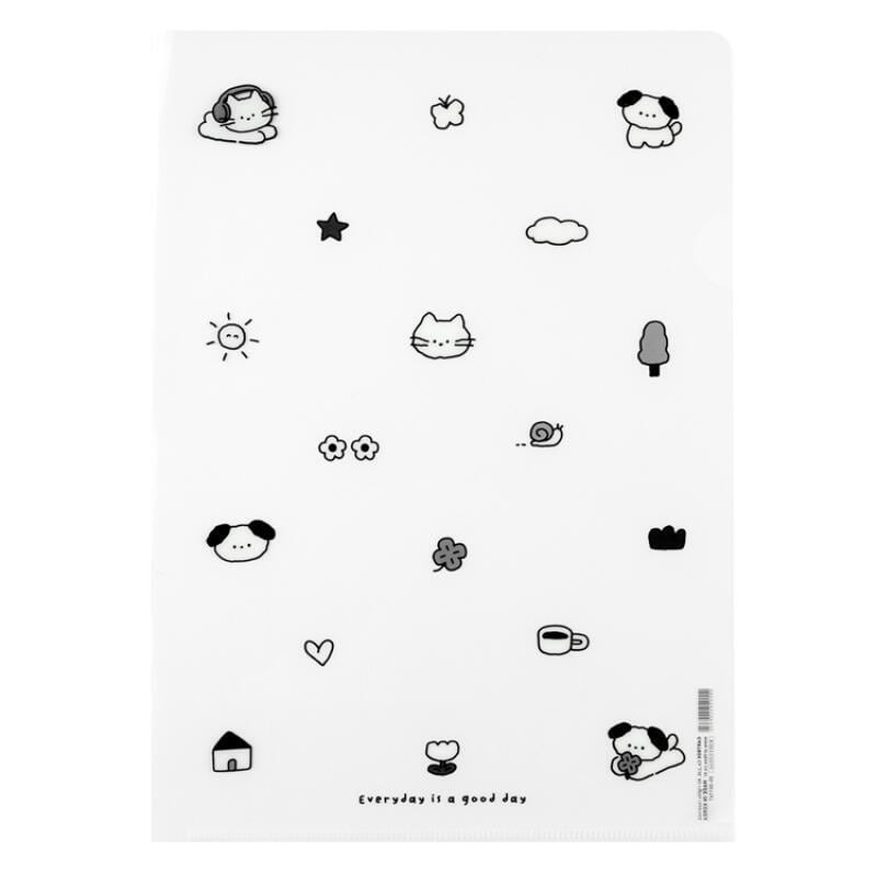 シンプルな白黒で可愛いイヌとネコのイラストが描かれたL字ファイルです♡