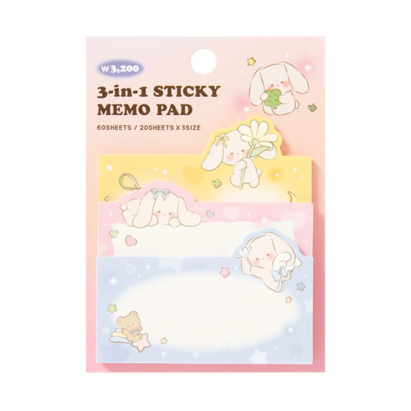 可愛いうさぎのイラストが魅力的な3段粘着メモです♡
