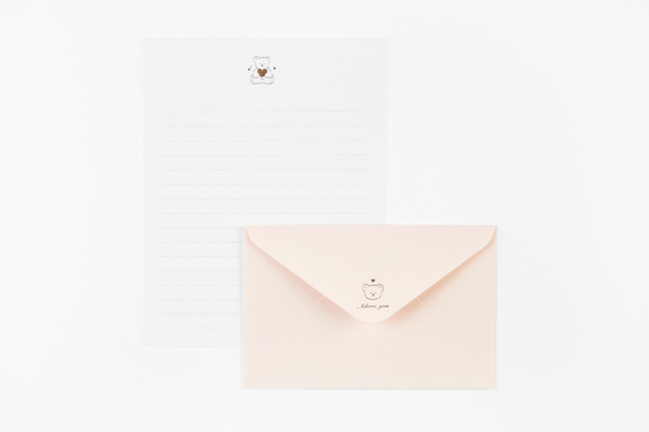 ホワイト便箋4枚と薄いピンクの封筒2枚で構成されています✉️