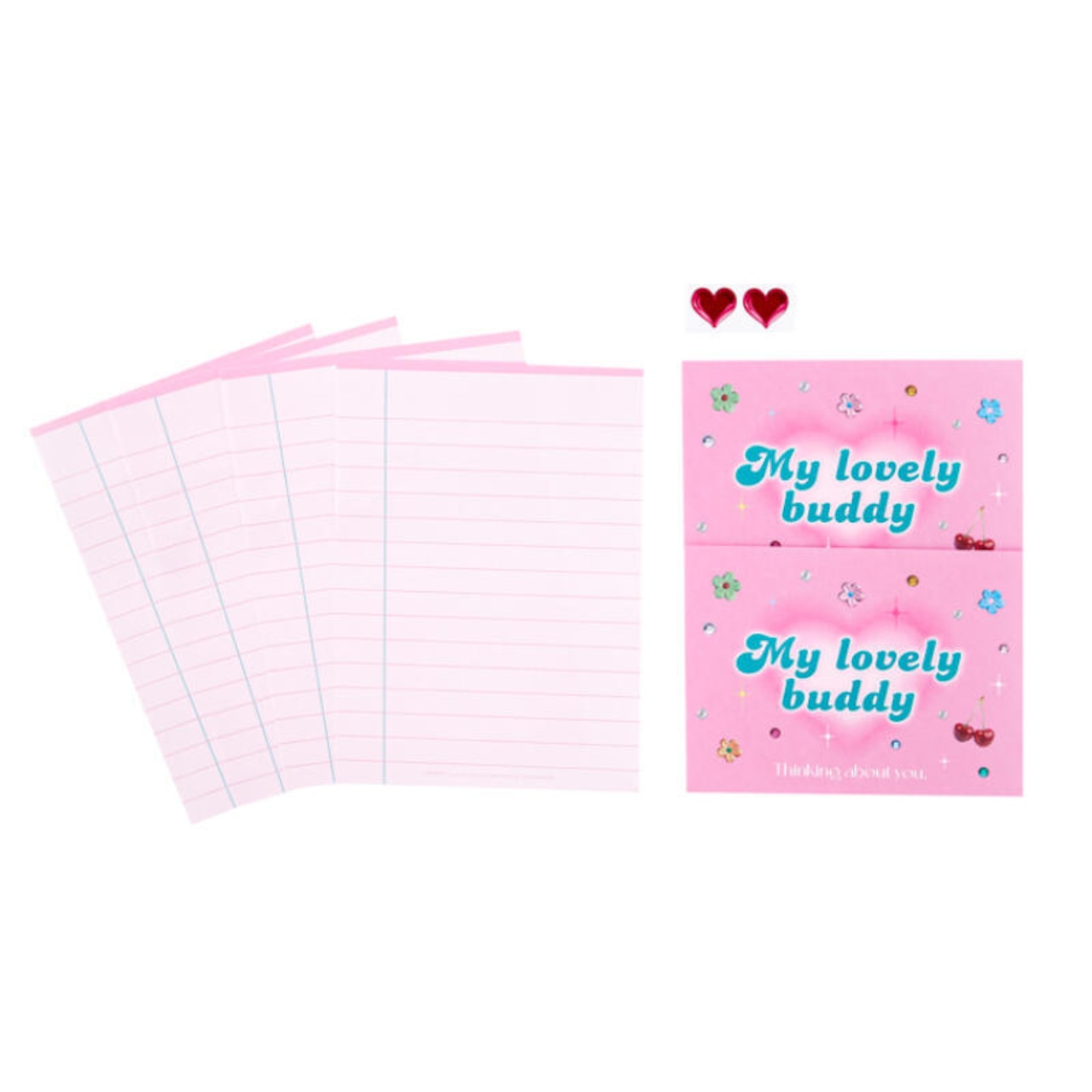 ノートスタイルの便箋4枚、封筒2枚、ステッカー1シートで構成されています✉️