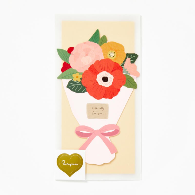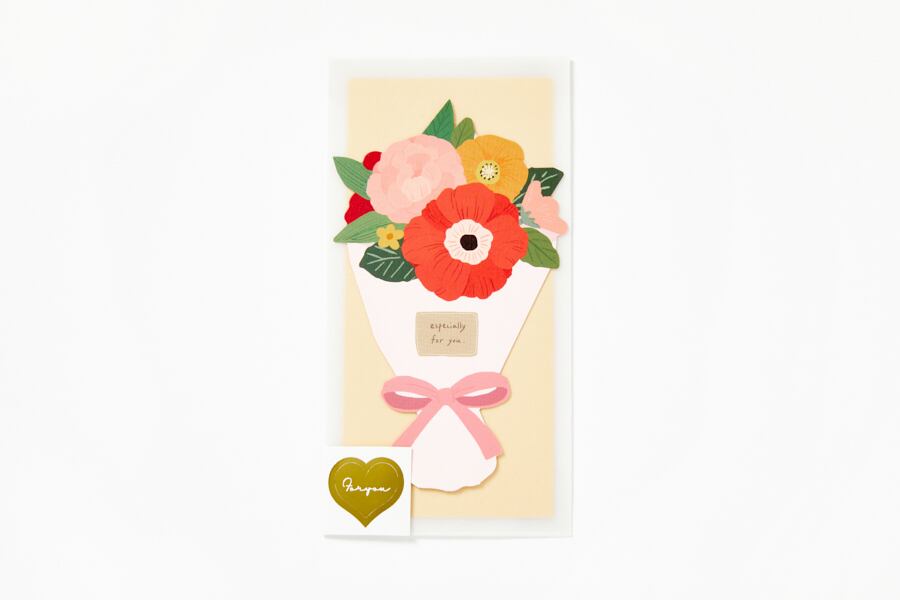 花束カードとお金を包装できる袋、半透明袋がセットで構成されています。