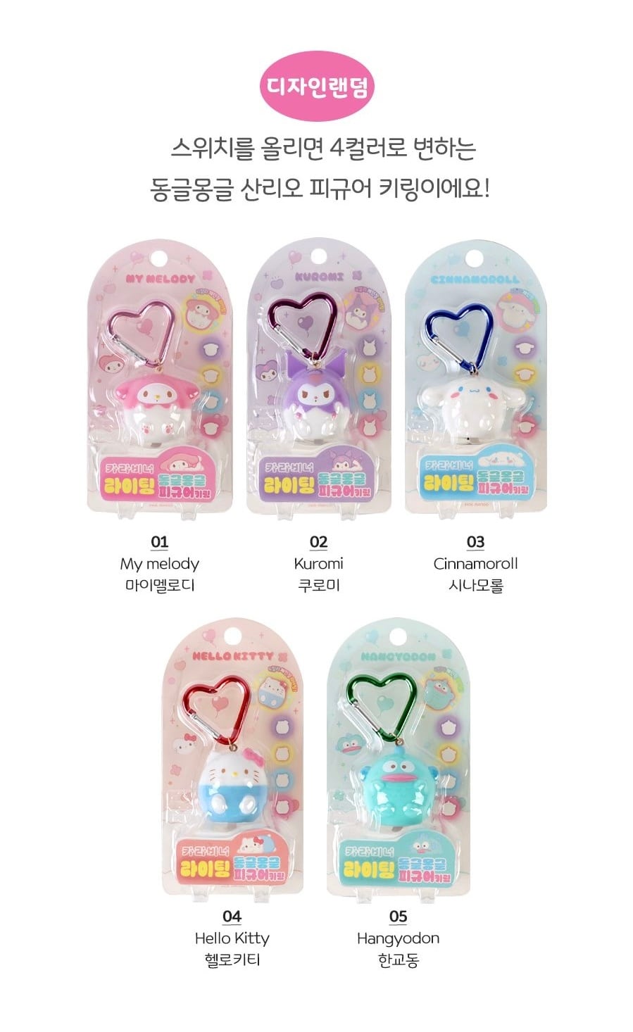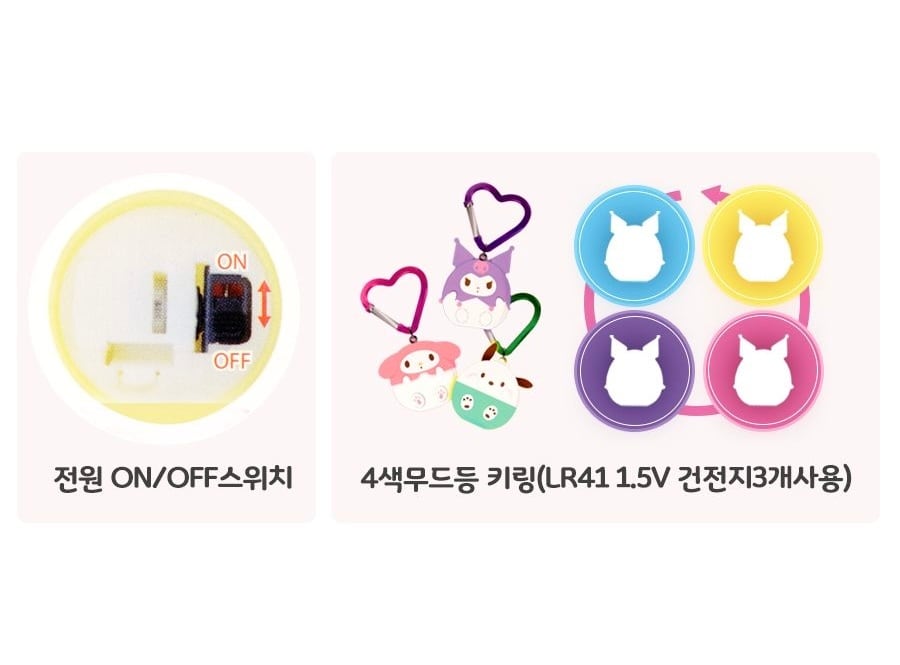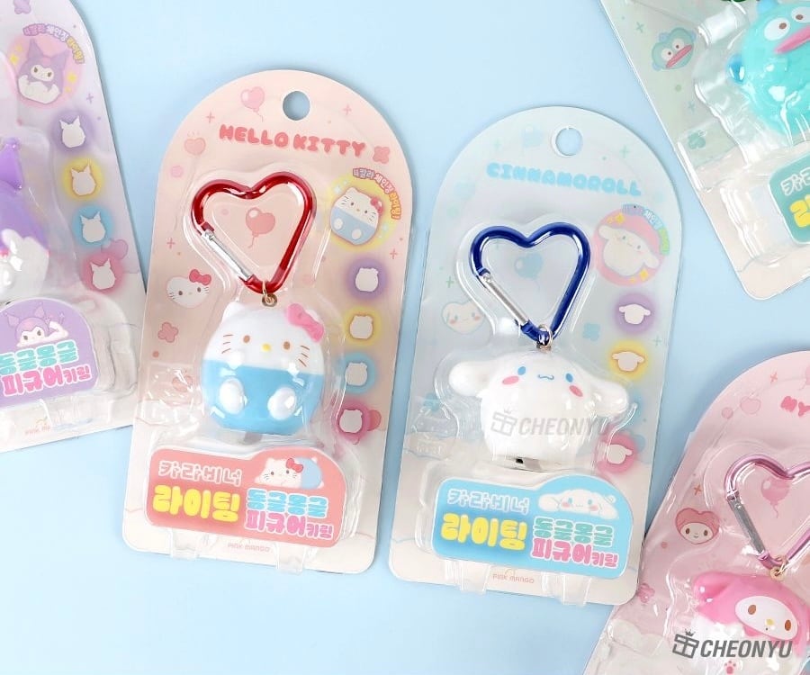 スイッチを入れると4カラーに光る、サンリオのフィギュアキーリングです✨