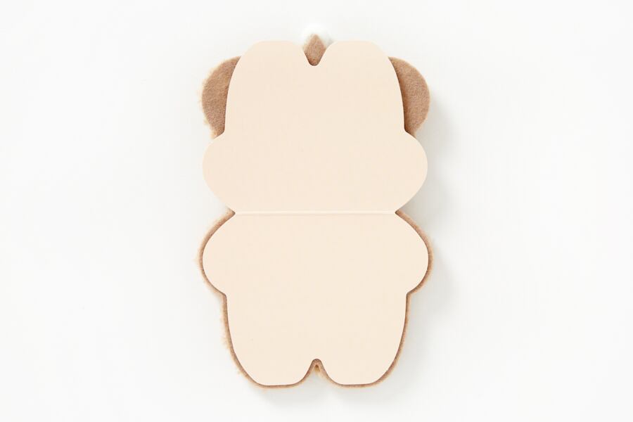 サテンリボンが付けられたギフトボックスを抱いているクマのカードと封筒がセットで構成されています。