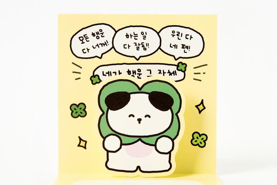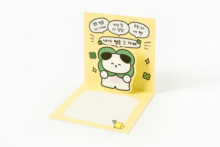幸運いっぱいの犬とひよこが伝える可愛くて愉快なポップアップカード!