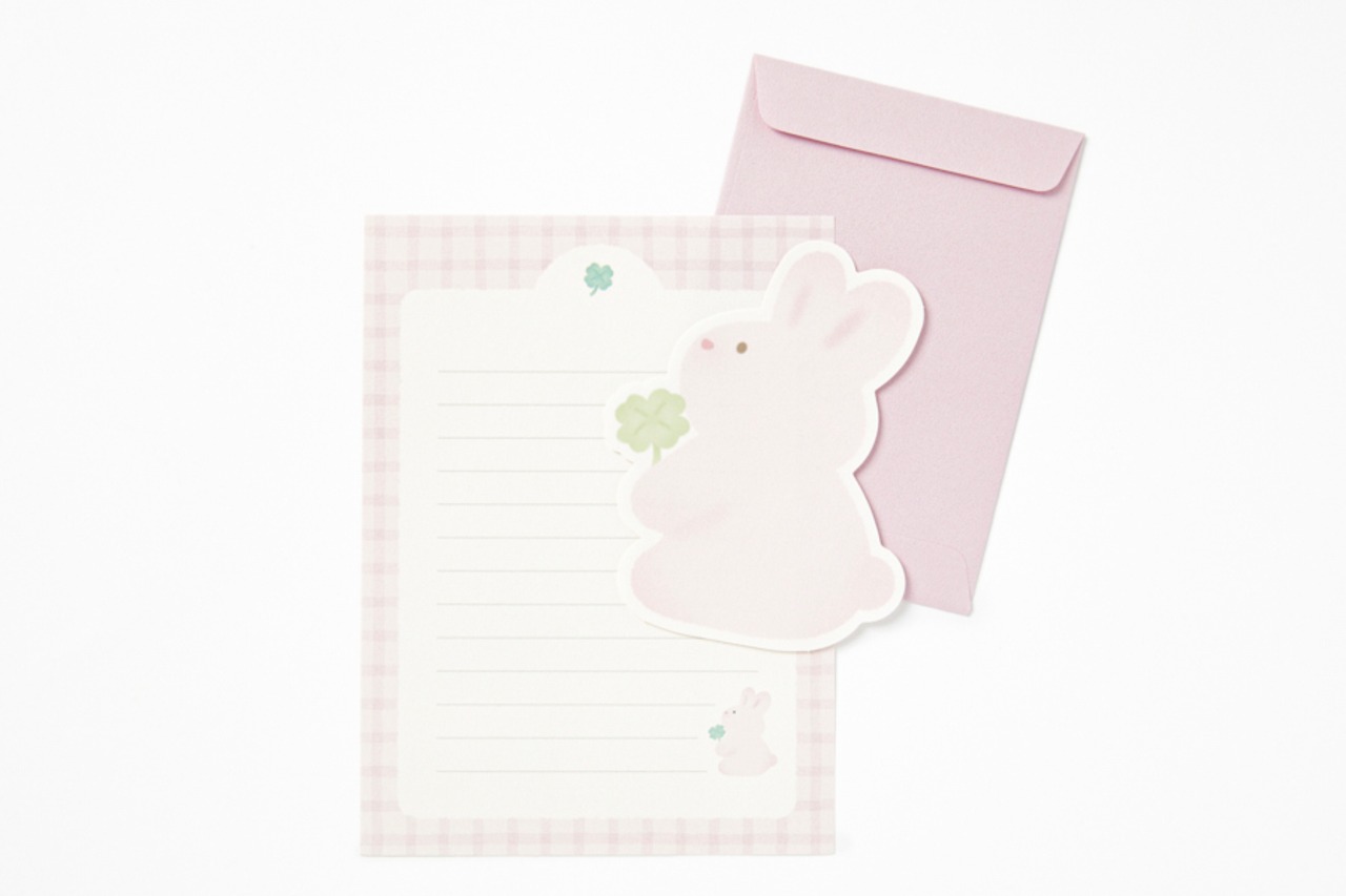 可愛いうさぎレター2枚、四角いレター4枚、カラー封筒2枚で構成されています。