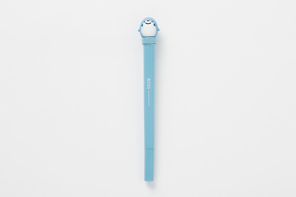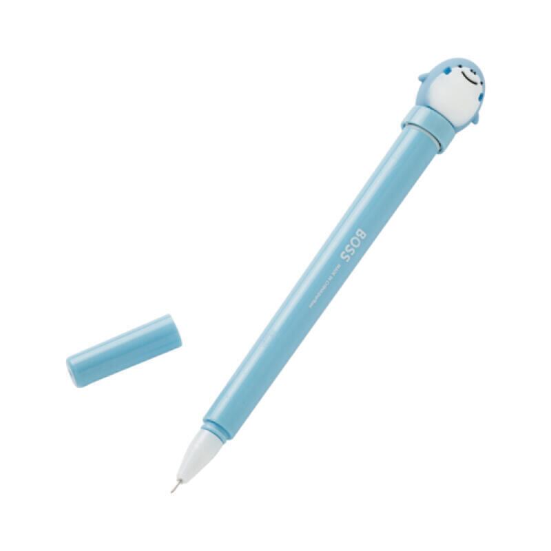 落ち着いたブルーカラーに可愛いボスフィギュアがついているスピナーボールペンです。