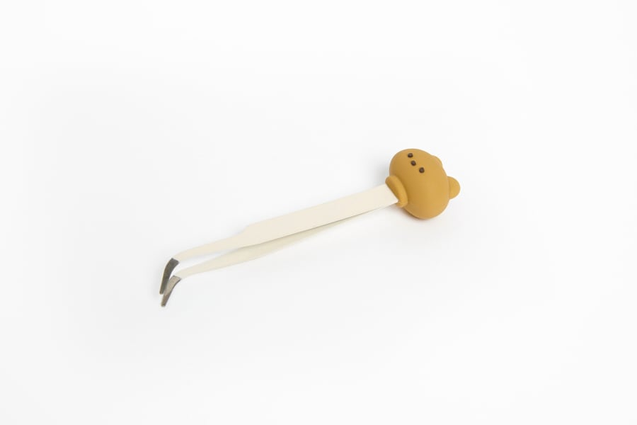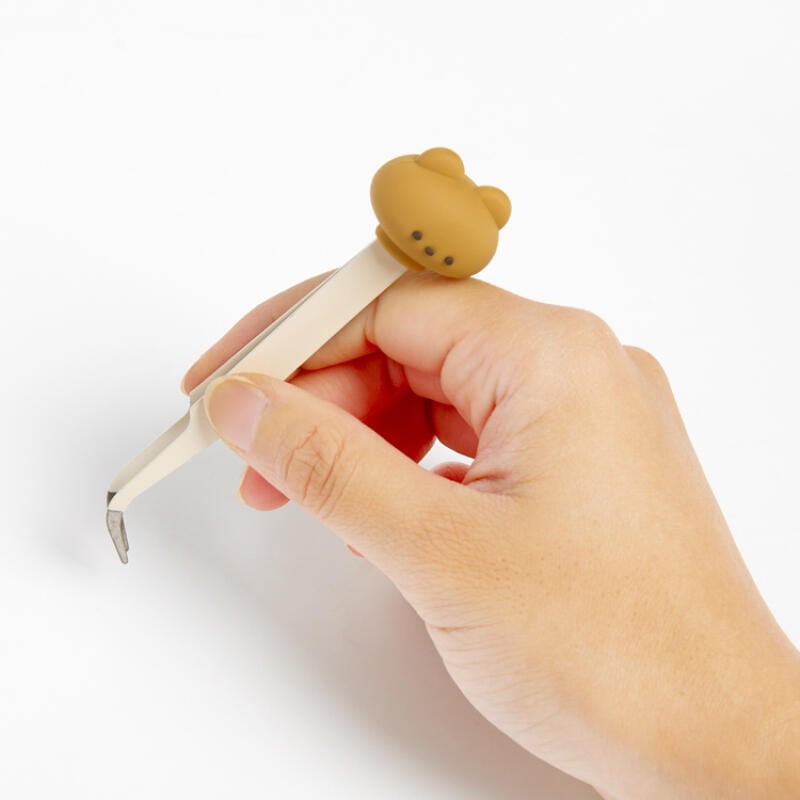 アイボリー色の持ち手に可愛いくまのフィギュアがついたピンセットです₍ᐢ。•༝•。ᐢ₎