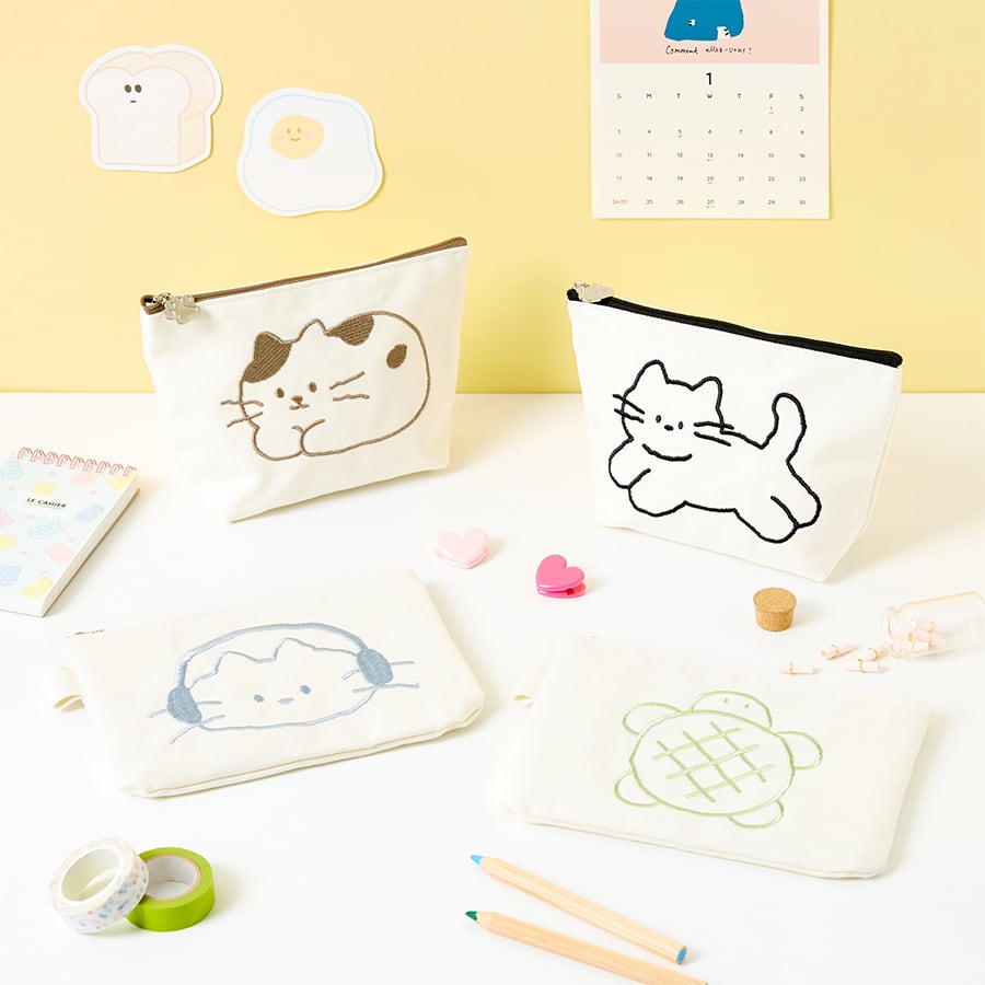 可愛い猫の刺繍が全面にポイントとして入っているマルチポーチです(=^x^=)