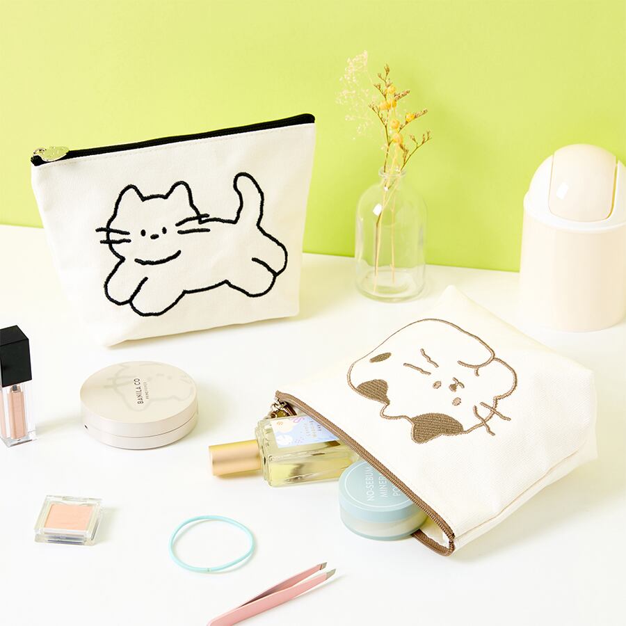 可愛い猫の刺繍が全面にポイントとして入っているマルチポーチです(=^x^=)