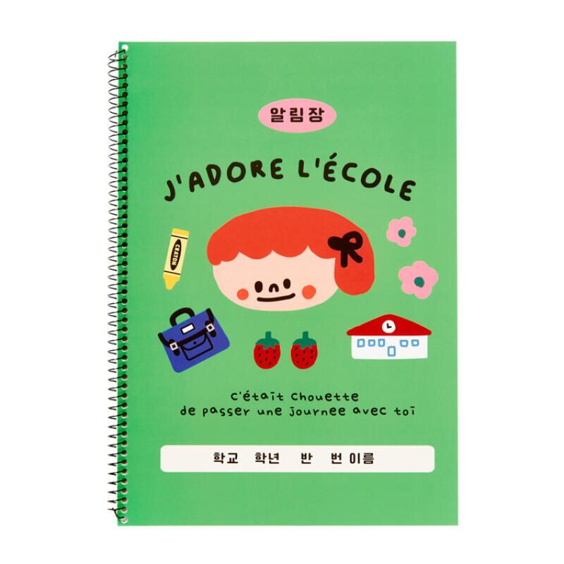 女の子と学校のイラストが描かれた、童話本のような表紙の連絡ノートです✏️