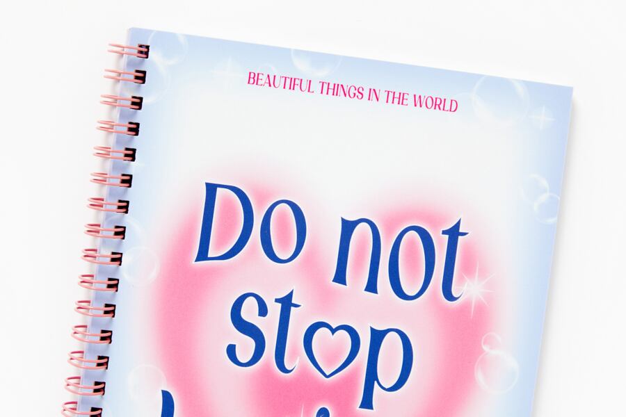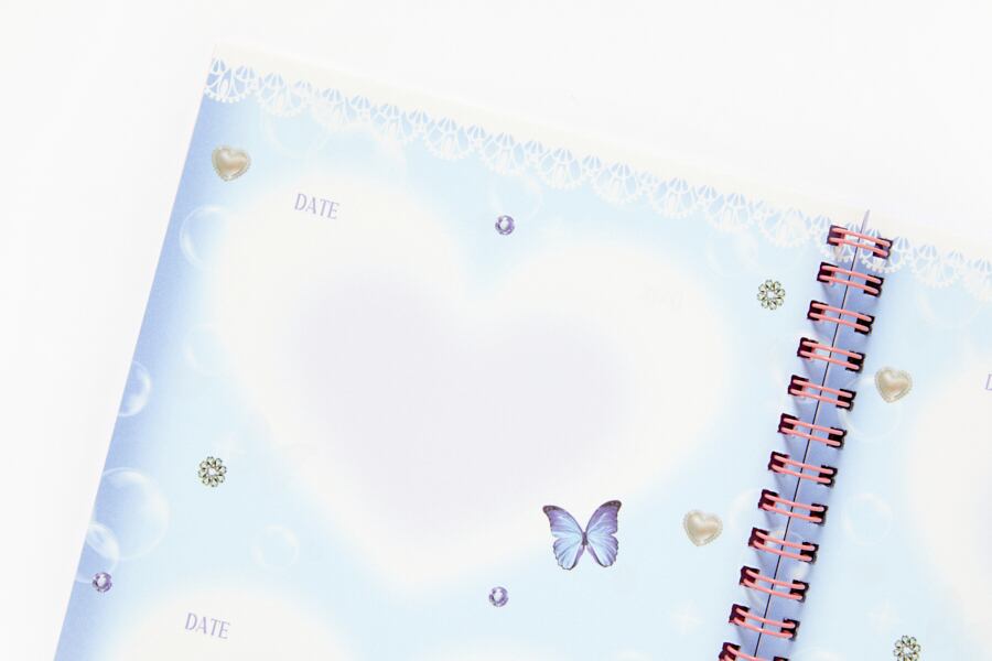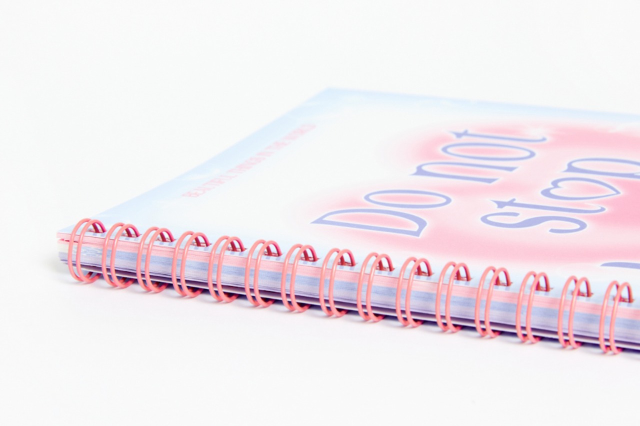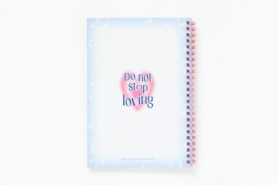 キラキラした「Do not stop loving」ハートの表紙デザインのスプリングノートです♡
